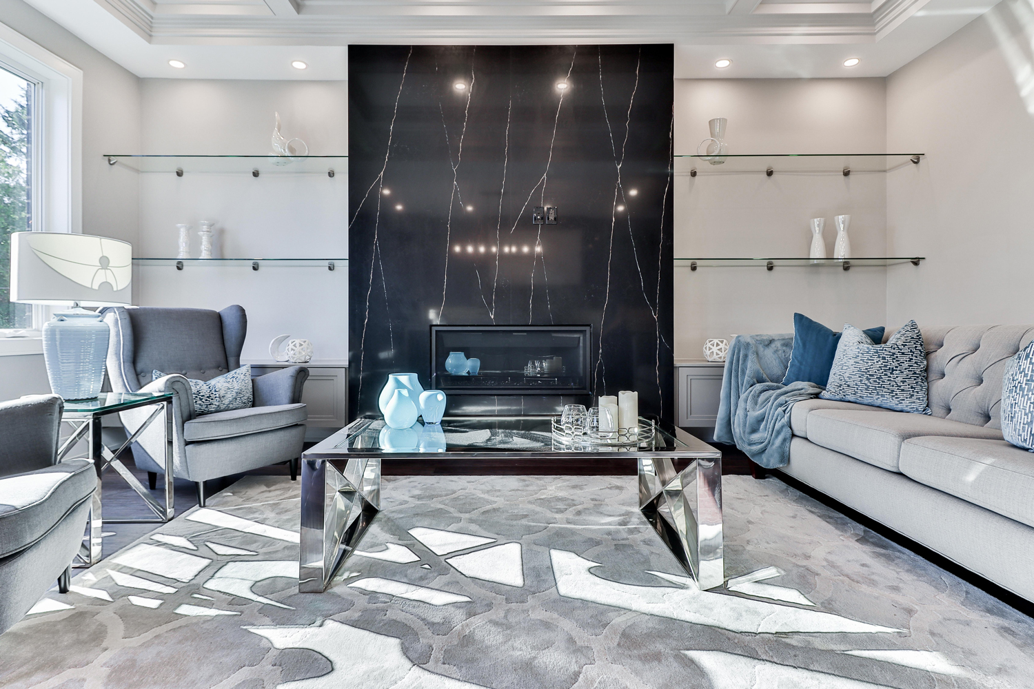 An architectural masterpiece located in Bel Air, Palazzo di Vista has arguably the greatest views of Los Angeles, stretching from the San Gabriel Mountains to the Channel Islands. The estate sits at the top of a promontory with the main entrance featuring a floating marble bridge-like pathway that leads to a towering, opulent front door. Inside the living room, a retractable DJ table provides unique entertainment and compliments the modern feel of the glass elevator encompassed by a Feng Shui Koi pond.